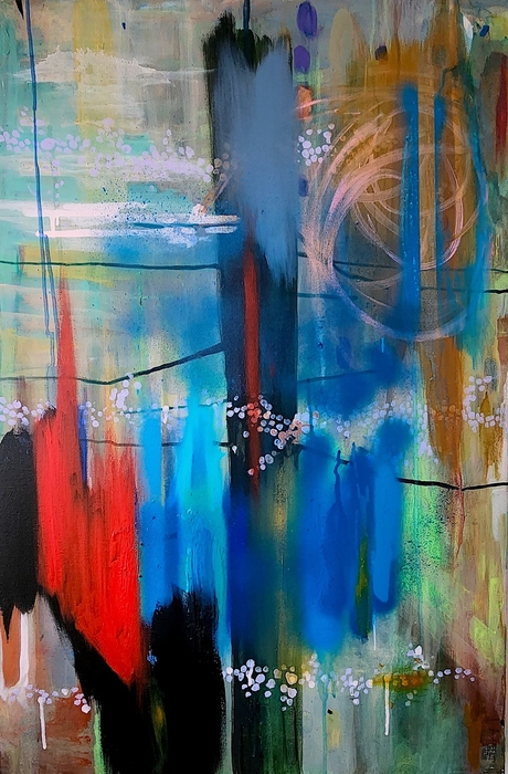Acrylic, Spray Paint, Bead Gel on Canvas 36 x 24 inches 2023 tags: Aaron KalinayAbstract ArtPhiladelphia ArtPhiladelphia ArtistPhiladelphia PaintingAbstract Painting